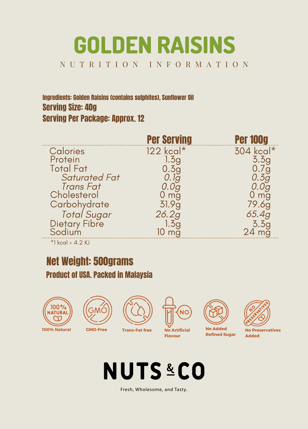 Nuts & Co USA California Golden Raisins / Kismis Emas / 特大黄金葡萄干